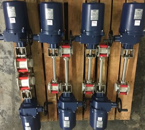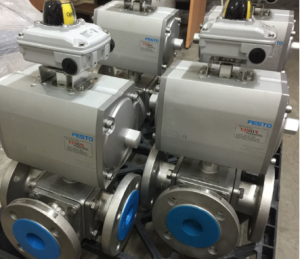 Stainless Steel 2” PN16, 3 way T-port ball valves with Festo pneumatic actuators